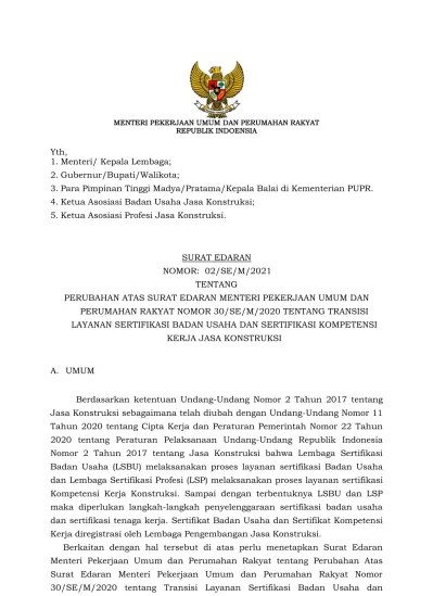 Umum bahwa sesuai dengan ketentuan pasal 30b ayat (3), pasal 30f, dan pasal 30k peraturan pemerintah nomor 14 tahun 2021 tentang Untuk sbu yang habis masa berlakunya setelah tanggal 22 januari 2021, tidak wajib memiliki surat keterangan yang divalidasi oleh lpjk, karena menurut surat. Tujuan dari surat edaran ini adalah untuk: Maksud dan tujuan surat edaran ini dimaksudkan sebagai acuan pelaksanaan pelayanan sertifikasi badan usaha pada masa transisi. Umum peraturan pemerintah nomor 5 tahun 2021 tentang penyelenggaraan perizinan berusaha berbasis risiko dan peraturan pemerintah nomor 14 tahun 2021 tentang perubahan atas peraturan pemerintah nomor 22 tahun Surat edaran ketua lembaga pengembangan jasa konstruksi nomor 04/se/lpjk/2021 tentang pedoman teknis penyetaraan kompetensi tenaga kerja konstruksi asing pedoman teknis penyetaraan kompetensi tkka bab i ketentuan umum dalam surat edaran ini yang dimaksud dengan: Sistem pengelolaan komunikasi informasi terpadu dan utama masuk web utama registrasi akreditasi lisensi penilai ahli simpan siki pkb tenaga kerja asing. 31.08.2021 · bahwa surat keterangan yang divalidasi oleh lpjk hanya wajib bagi sbu yang masa berlakunya habis sebelum tanggal surat edaran menteri pupr no. 2 tahun 2021 yakni sebelum 22 januari 2021. 02/kpts/lpjk/i/2021 tentang tim penyelenggara sertifikasi badan usaha dan sertifikasi kompetensi kerja jasa konstruksi dalam masa transisi. 05/se/lpjk/vii/2021 tentang pedoman pemberian rekomendasi lisensi lembaga sertifikasi profesi (lsp), dan pencatatan lembaga sertifikasi profesi (lsp) terlisensi a. 02/kpts/lpjk/i/2021 tentang tim penyelenggara sertifikasi badan usaha dan sertifikasi kompetensi kerja jasa konstruksi dalam masa transisi. 02 /se/lpjk/2021 tentang pedoman teknis lisensi lembaga sertifikasi badan usaha jasa konstruksi a.